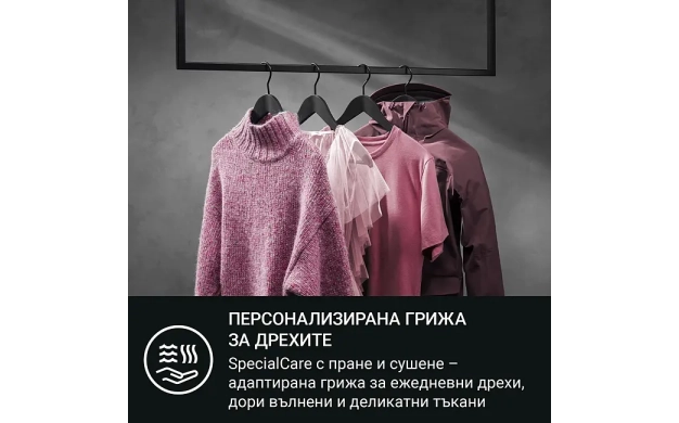 • SpecialCare Wash-to-Dry – персонализирани програми за пране и сушене, щадящи дори вълна и деликатни материи. Сертифицирано с Woolmark Blue.