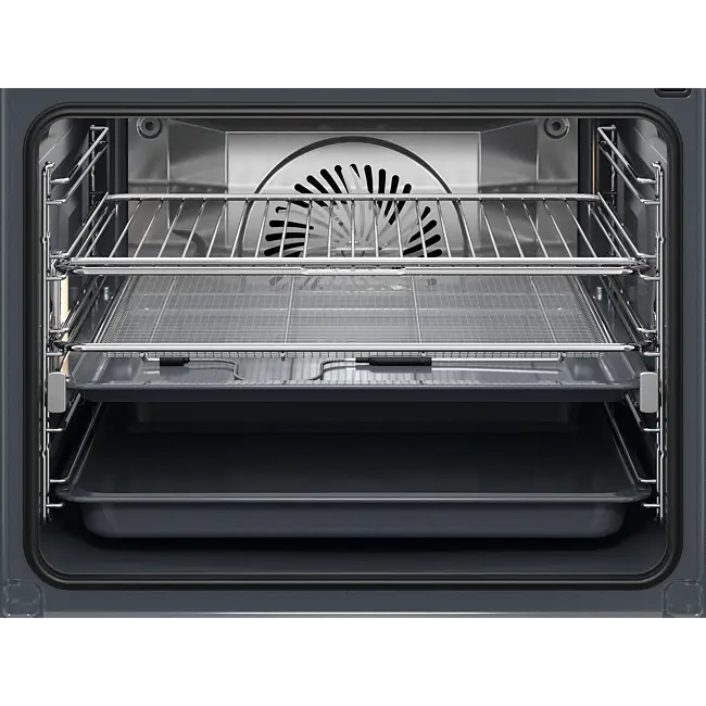 Мултифункционална фурна за вграждане със 70 л полезен обем, 12 многостепенни режима + 135 програми за готвене, покриваща всичко – от стандартно печене до ProSteam (пълна, висока, средна, ниска пара), Steamify, Sous-Vide, бавно готвене, поддържане на топлина и претопляне. Налични са едно ниво телескопични водачи, бързо загряване, индикатор за остатъчна топлина и електронно заключване за детска защита.