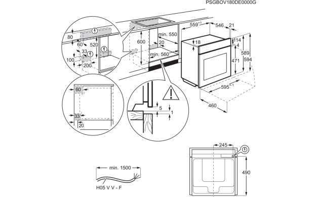 Размери за вграждане (В×Ш×Д) 590 × 560 × 550 мм