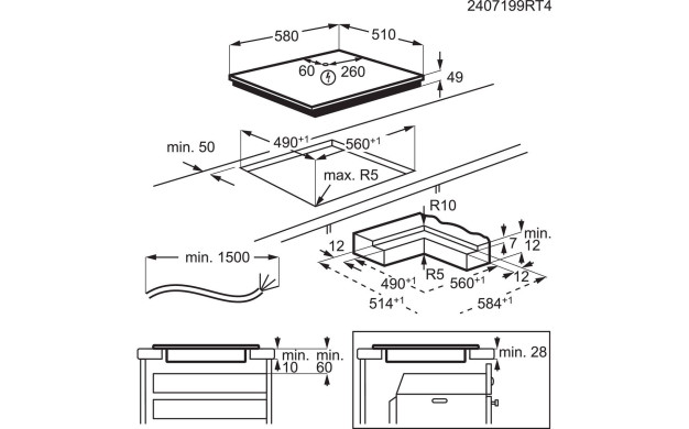 Размери (ВхШхД) 44x560x490 мм (за вграждане)