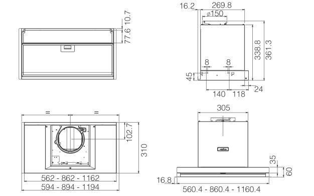 • Серията аспиратори за пълно вграждане при която шкафа покрива цялото дъно и защитава дори и страниците.