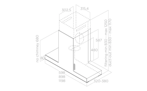 • * Вече има повече начини за инсталиране на вашия аспиратор. При моделите с тази функция е възможно да се завърти конвейерът и директно да се свърже аспираторът с изхода в стената зад него или при други модели, специалната архитектура на продукта позволява стенният изход да бъде създаден с 90-градусова колянна тръба. Така можете да разчитате на максимално изсмукване, като същевременно запазите оригиналния външен вид на продукта, който няма да бъде модифициран от тръби или допълнителни видими димоотводи.