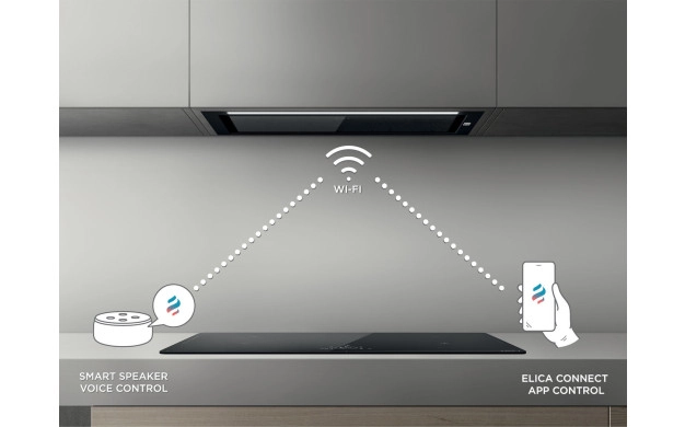 • Connectivity - С нарастващото широко разпространение на света на loT стана обичайна практика да управлявате всичките си устройства с wi-fi връзка. Вече можем да управляваме нашия аспиратор със специалното приложение на Elica или чрез гласово управление за да го включим или изключим, да регулираме скоростта на изсмукване на интензитета и цвета на светлината просто с едно щракване или с помощта на най-популярните гласови асистенти. Приложението също се превръща в полезен инструмент за поддържане на продукта благодарение на периодични съобщения които отчитат състоянието му, всички необходими операции по почистване или такива, които се нуждаят от подмяна.
