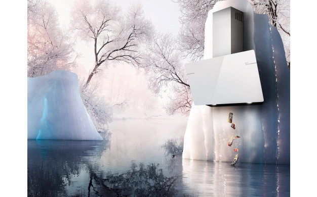 • Elica L-essenza се предлага в черно и бяло стъкло, 60 и 90 см ширина. Аспираторът е с мощна концентрация на налягане в периметъра на засмукване.