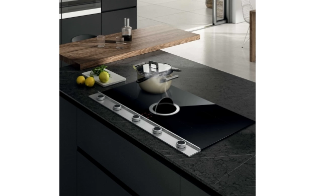 • Дръзките копчета придават на Nikolatesla Unplugged професионален, здрав и висококачествен вид. Тяхната перфектна текстура за захващане покрива изключително стабилна вътрешна структура, докато магнитното освобождаване на външния капак прави операциите по почистването и поддръжката лесни и прецизни. Плавното и лесно почистване на плота се гарантира и от централната стъклена клапа, която прикрива зоната за изсмукване, като я активира само когато е необходимо.
