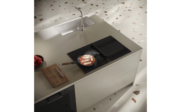 • Настройва се автоматично, спестявайки енергия. Този аспириращ плот разполага с вертикални линии върху стъклената повърхност и централната клапа, за да създаде текстура, подобна на кадифе: оригинален дизайн, който се слива идеално с всеки кухненски стил. Неговите автоматични режими, като този, който регулира мощността на изсмукване въз основа на използваните зони за готвене, са проектирани специално за вас. Той осигурява изключителна производителност и безшумна работа дори при максимална мощност. Ако готвите за много хора, можете да свържете две съседни зони, за да поберете по-големи съдове за готвене. Този плот има интуитивен контрол, така че можете лесно да регулирате функциите му: някои от многото са за бавно готвене, за да загреят мляко и бульон, да приготвят кремове и сосове без прегряване или да поддържат готовата храна топла. Тези филтри могат да издържат до 5 години, осигуряват супер-ефективен капацитет за филтриране на миризми и намаляват въздействието върху околната среда.