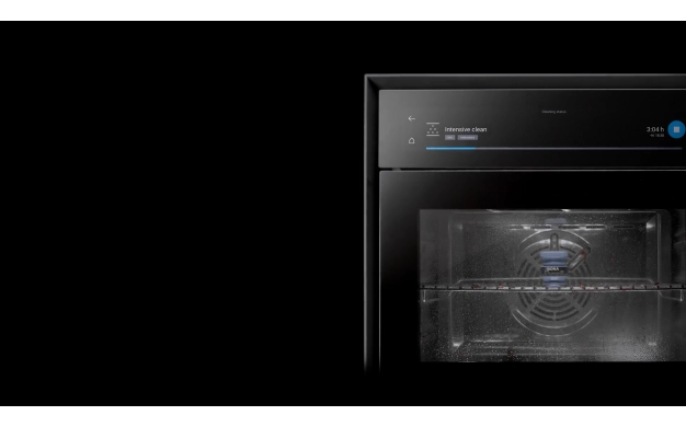 Една от ключовите причини X BO да е „професионална за дома“ е иновацията в почистването. Камерата се почиства чрез напълно автоматични програми – от бързо до интензивно почистване – с двукамерен почистващ патрон. След цикъла уредът прави ефективно сушене, така че в повечето случаи не се налага избърсване. Това е огромна разлика спрямо стандартните парни фурни, при които влагата остава по стените.