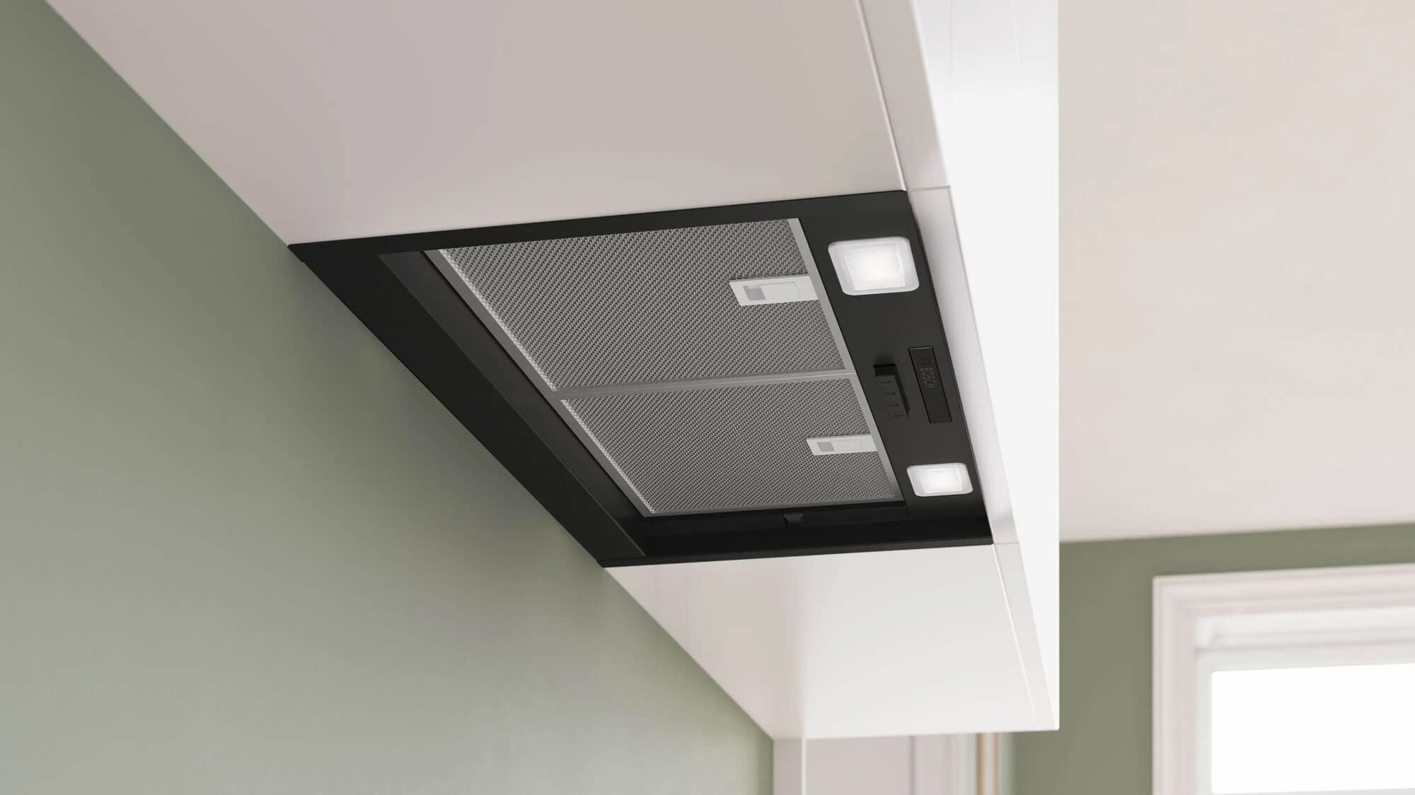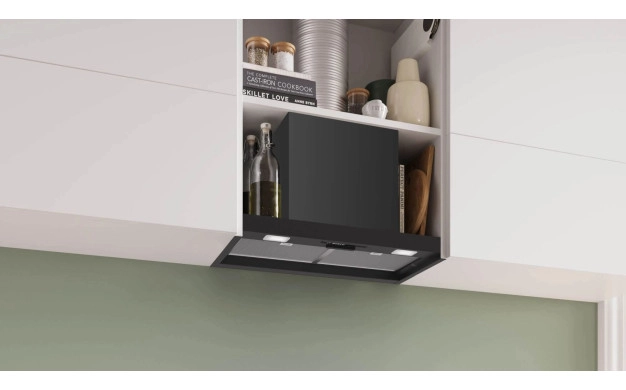 Bosch DBB63BC60 – интегриран аспиратор „кубче“ 60 см (черно мат) с максимално пространство за съхранение и двойна филтърна система