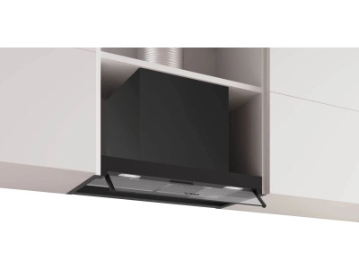 Големият плюс на DBB63BC60 е интегрираната конструкция: аспираторът се „скрива“ в горния шкаф и остава видима само функционалната част отдолу. Така получавате минималистичен външен вид без компромис с работната площ над плота.
