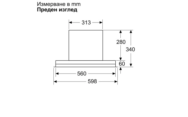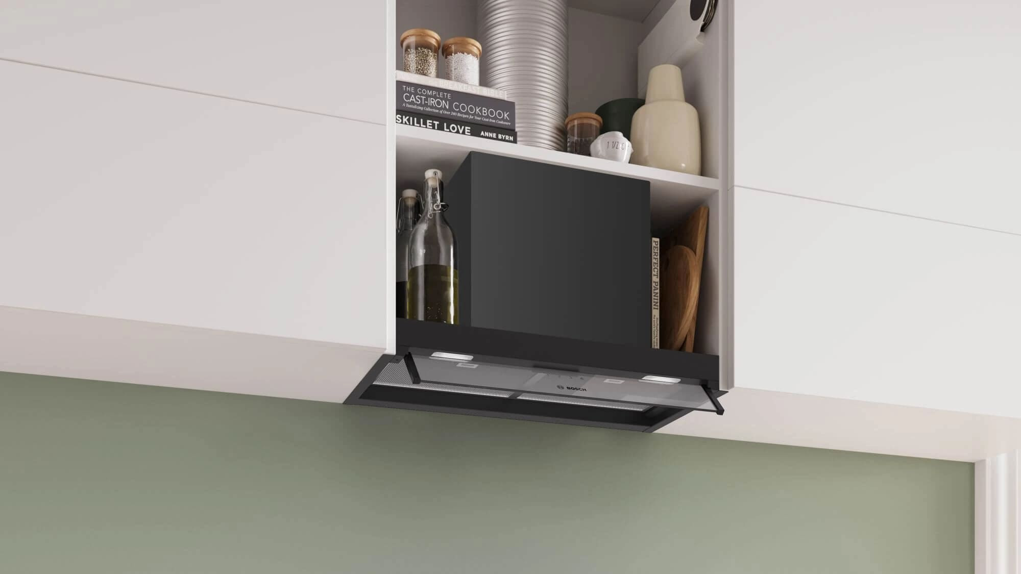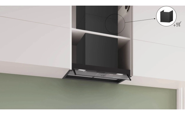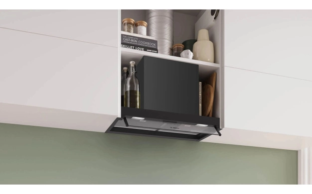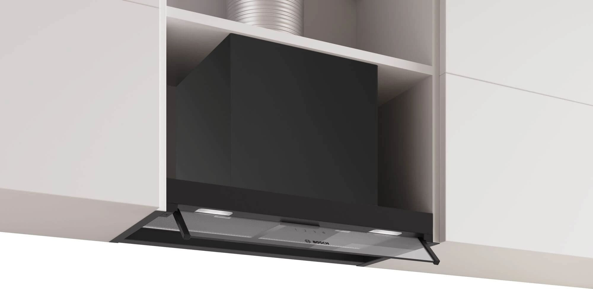 Bosch DBB65CC60 – интегриран аспиратор “кубче” 60 см, черно мат с прозрачно стъкло, до 583 m³/h