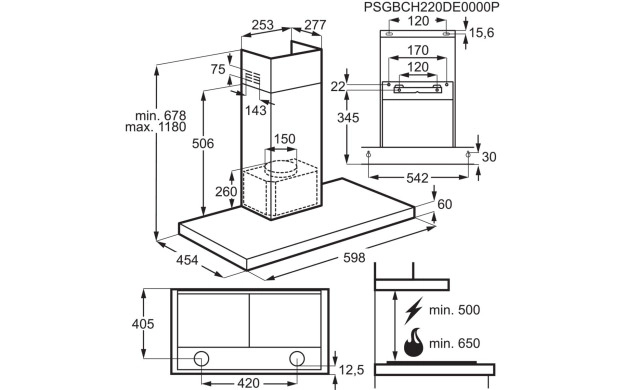 Декоративен аспиратор с Т-форма AEG DBE5660HB - Характеристики