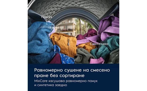 • MixCare – суши памук и синтетика заедно, без необходимост от предварително сортиране.