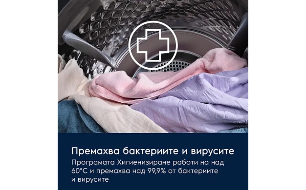 • Програма Хигиенизиране – премахва над 99,9% от бактериите и вирусите при сушене над 60°C.