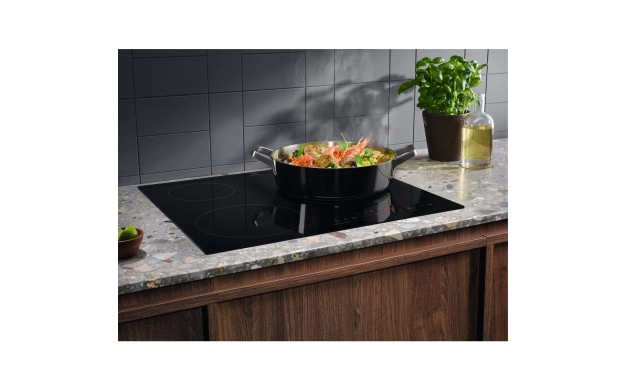 • Индукционна технология – нагряването става директно в дъното на съда, а стъклокерамиката около него остава сравнително хладна. Това означава по-бързо готвене, по-нисък разход на енергия и лесно почистване.