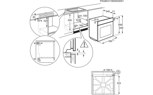 Размери за вграждане (В×Ш×Д) 590 × 560 × 550 мм