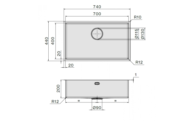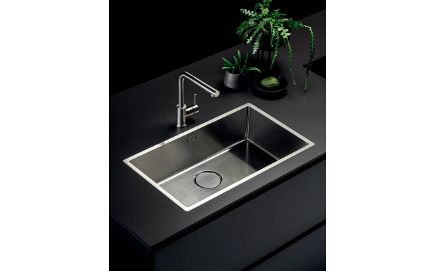 Falmec Como 70 е елегантна еднокоритна мивка за подплотен монтаж, проектирана за модерни кухни, които търсят минималистична визия, безкомпромисна хигиена и дългогодишна надеждност. Изработена от висококачествена AISI 304 (18/10) неръждаема стомана с равномерна дебелина около 1 мм, тя комбинира просторни размери (корито 700 × 400 мм, дълбочина 200 мм) с фино изработени детайли за лесно почистване и комфорт при ежедневна употреба.
