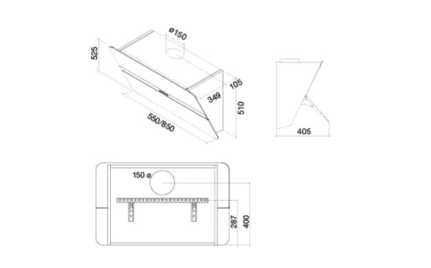 FALMEC FLIPPER 55 BK е предназначен за стенен монтаж над готварски плот. Може да работи както в режим с отвеждане на въздуха навън (чрез въздуховод Ø150 mm и опционален комин), така и в рециркулационен режим, при който пречистеният въздух се връща обратно в помещението. Тази гъвкавост го прави подходящ избор за апартаменти без възможност за изкарване на тръба.