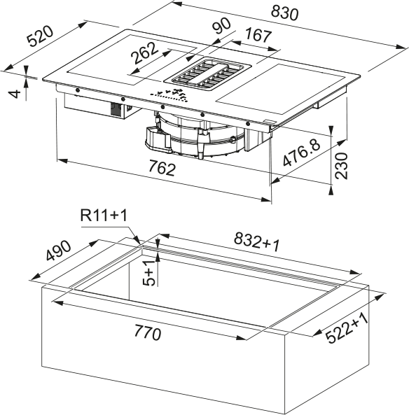• 2-в-1 решение: индукционен плот + интегриран аспиратор в една повърхност