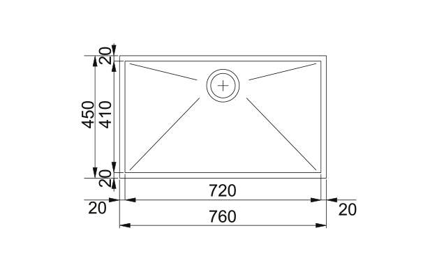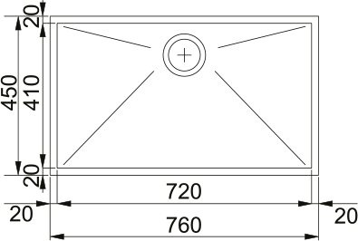 • Едно голямо корито (720×410 мм) – удобно за тави, големи тенджери и решетки.