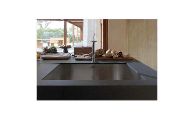 Franke Planar PPX 110-72 е премиум мивка за монтаж под плот (undermount), създадена за модерни кухни, където се търси максимално чиста линия, лесно почистване на плота и голямо корито за ежедневните задачи. Моделът е от неръждаема стомана с сатениран/четкан финиш и е без отцедник – идеален избор за плотове от камък, гранит, кварц или композит.