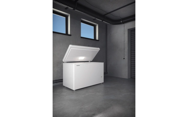 • Иновацията StopFrost предоставя две решаващи предимства: Съществено се редуцира заскрежаването на фризерното пространство и на замразените продукти, а заедно с това размразяването е необходимо много по-рядко. Освен това със системата StopFrost след отварянето и затварянето на капака на раклата вече не възниква понижено налягане. Фризерната ракла може да се отваря без усилия по всяко време.