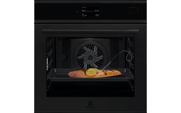 Electrolux EOB9S3XT е първокласна парова фурна за вграждане, създадена за хора, които не правят компромиси с вкуса, здравословността и удобството в кухнята. Моделът от серията SteamPro комбинира готвене с пара, сензорно управление, автоматизирани програми и иновативен дизайн в матово черно.