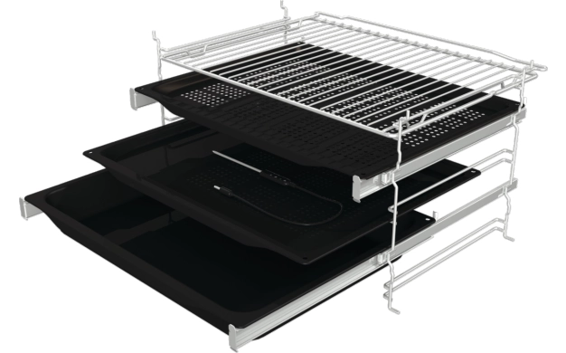 • Перфориране емайлирана тръба: Перфорираната емайлирана тава позволява повишена циркулация на гореш въздух, правейки ястията приготвени с програма AirFry още по-хрупкави и вкусни. Също така е подходяща за приготвяне на ястия на пара във фурни с функция SteamAssist.