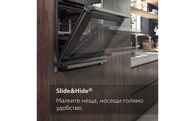 • Slide&Hide® – фурна с напълно скриваща се врата с въртяща се дръжка.