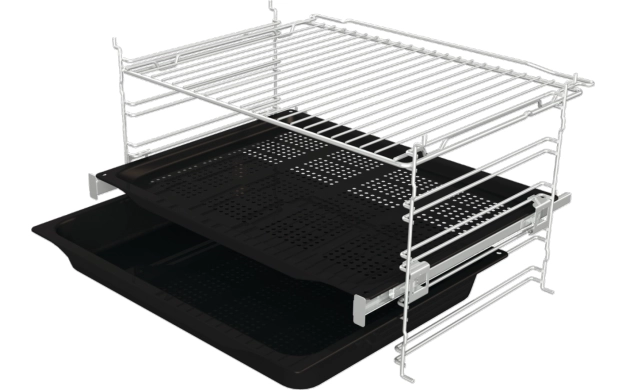• Телескопични водачи - За лесно боравене с тавите за печене - Плавно движещите се телескопични водачи осигуряват перфектен поглед над процеса на готвене, както и по-безопасно и лесно боравене с тавите за печене. В зависимост от модела, фурните Gorenje OptiBake разполагат с ¾ изтеглящи се телескопични водачи на едно или две нива. Като допълнителна опция предлагаме също гъвкави телескопични водачи на едно ниво, които могат да се настройват на желаното ниво печене.