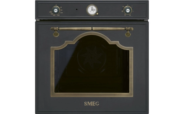Фурна за вграждане SMEG SF67C1AO Cortina – антрацит ретро дизайн с античен месинг, 70 л, 6 функции