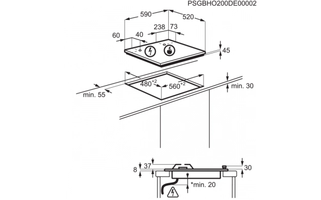 • Размери за вграждане мм (ВхШхД): 40x560x480
