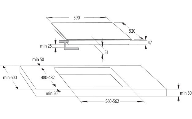 Плотът Gorenje ECT632BSCE е предназначен за стандартен вграден монтаж с размер на отвора 560 x 490 мм. Благодарение на своята тънка рамка и прецизни размери, той се интегрира лесно във всякакъв тип кухненски плот. Препоръчва се монтажът да се извърши от квалифициран специалист, особено при свързване към електрическата мрежа (2N AC 400V).