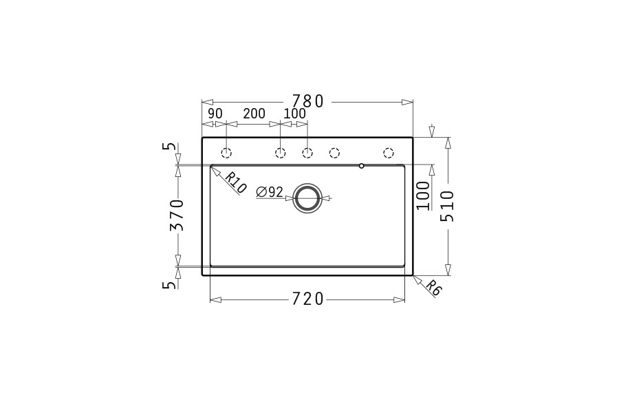 Моделът е проектиран за вграждане над плота – класически и сигурен монтаж, който се комбинира отлично с повечето кухненски плотове. Голямото корито и дълбочината от 200 мм правят измиването на обемни съдове по-лесно, а 5-те опции за отвор за смесител дават свобода при планиране – особено полезно, когато добавяте дозатор, филтърна система или искате конкретно позициониране на батерията.