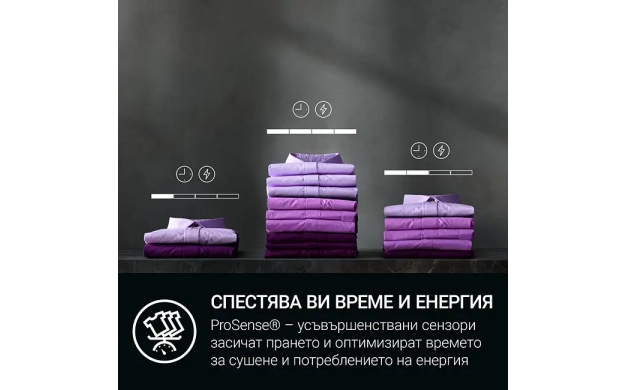 Технологията SensiDry® използва термопомпа, която поддържа ниска, контролирана температура. Така дрехите запазват формата си, цветовете и текстурата по-дълго, като същевременно изразходват значително по-малко енергия. Подходяща е дори за по-деликатни материи.