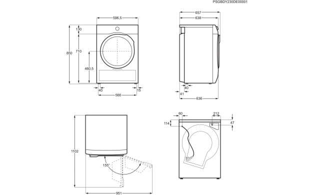 Размери (В×Ш×Д) 850 × 596 × 636 мм