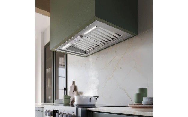 Gruppo Incasso PRO Plus 80 е професионално решение за пълно вграждане в шкаф 90/100 см. Корпус от неръждаема стомана AISI 304 (Scotch brite), 4 скорости, Baffle метални филтри и Dynamic LED осветление 2700–5600 K осигуряват мощно, ефективно и безопасно отвеждане на изпаренията.