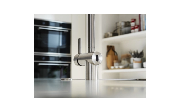 Сензорният режим позволява включване и спиране на водата без докосване, което значително намалява замърсяванията и разпространението на бактерии. Това прави смесителя изключително подходящ за семейства с деца и за кухни, в които се държи на високо ниво на хигиена.