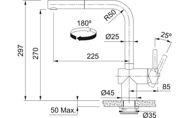 • 180° въртящ се чучур – удобство при двойни и големи мивки