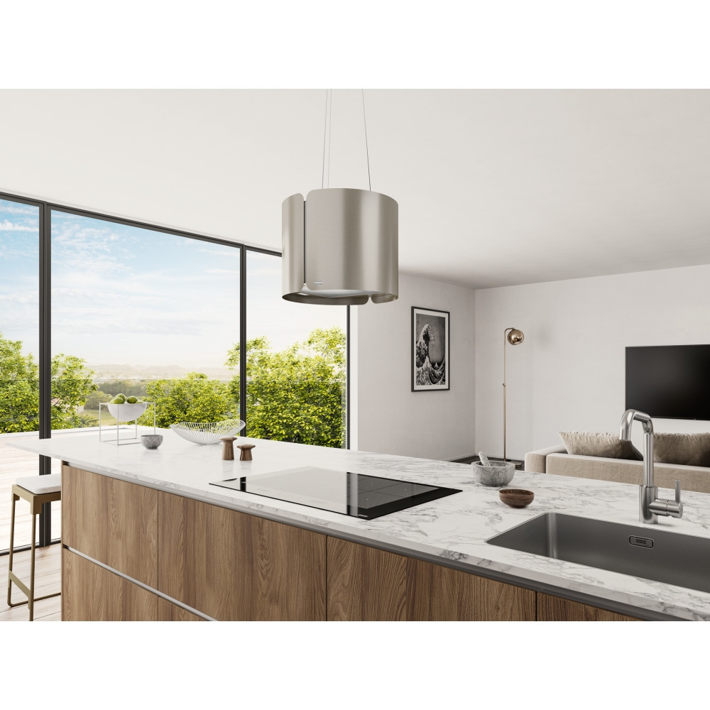 Проектиран като окачен аспиратор тип „лампа“, този модел е идеален за кухни с остров, където дизайнът е толкова важен, колкото и функционалността. С мощност до 740 m³/h той осигурява ефективно отвеждане на миризми и пара.