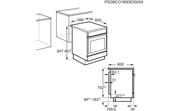 • Размери ВxШxД в мм: 850x596x600