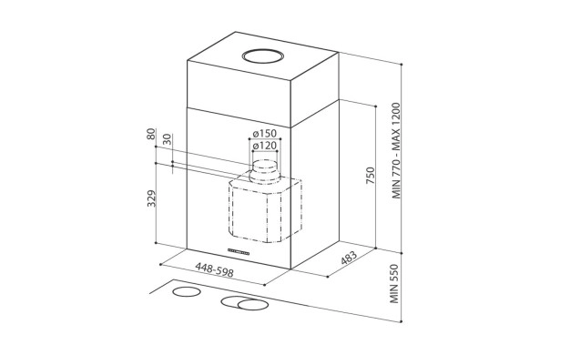 • Диаметър на изходна тръба ø 150