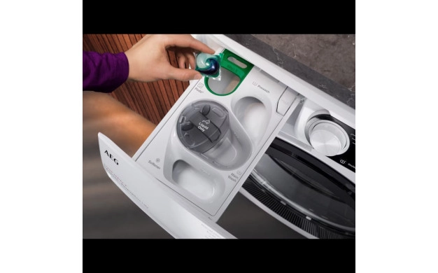 AEG LFR83944OE от серията 8000 PowerCare съчетава иновативна грижа с технологии като UniversalDose, Steam Refresh и Wi-Fi свързаност чрез приложението My AEG Care. Благодарение на предварителното смесване на перилния препарат и интелигентната PowerClean 59 мин. програма, постигате безупречно чисти дрехи само за 1 час – дори при ниски температури.