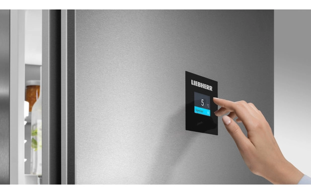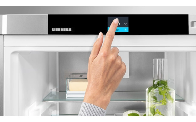 • Ясните съобщения спестяват време: Вашият Liebherr разполага с 2,4-инчов Touch&Swipe дисплей, който се намира в предната част на вратата. Така по всяко време може да разберете състоянието на уреда и да промените настройките му. Благодарение на висококачествените материали и лъскавата черна повърхност той идеално се слива с Вашия Liebherr.