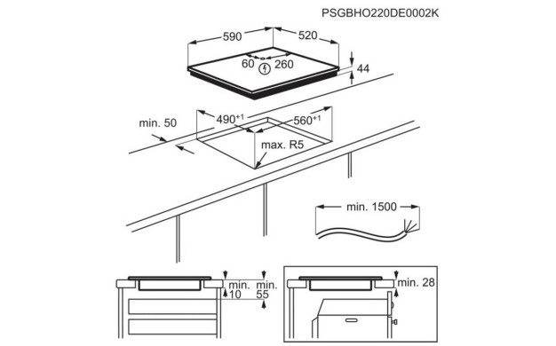 • Размери за вграждане (ВxШxД): 44 x 560 x 490 мм