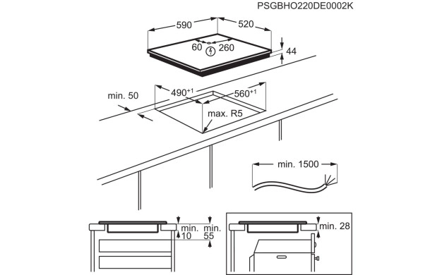 • Размери за вграждане мм (ВхШхД): 44x560x490