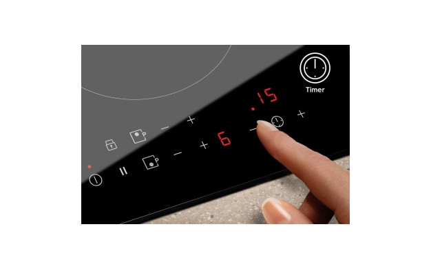 Лесно регулиране на настройките на плота със сензорното управление. Всяка зона за готвене има отделно управление на мощността, така че настройката на температурата се вижда ясно и се променя лесно. В допълнение гладката повърхност е лесна за почистване.