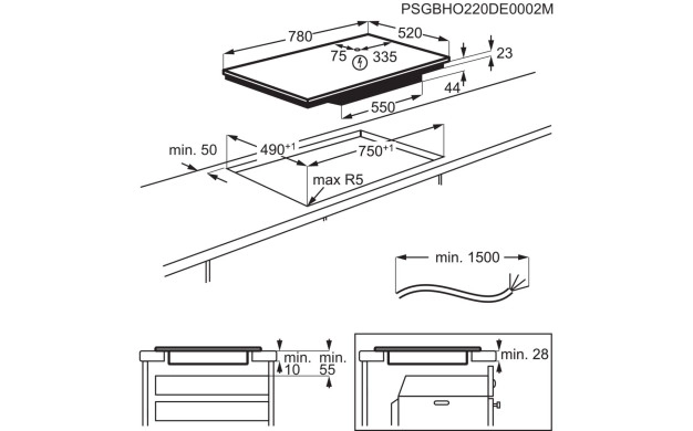• Размери за вграждане мм (ВхШхД): 44x750x490