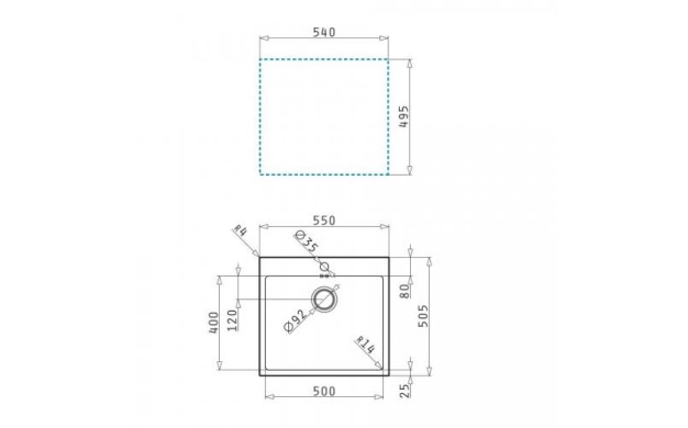 • Размер на мивката: 550 х 505 мм