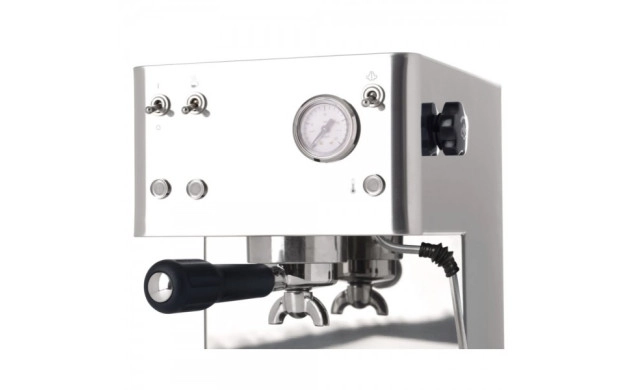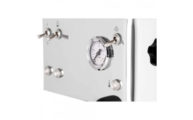 • Кафемашина за еспресо и капучино с черен стоманен корпус и компактен дизайн. Манометър на помпата, превключватели със светодиоди за всяка функция на машината, за перфектно еспресо дори у дома.
