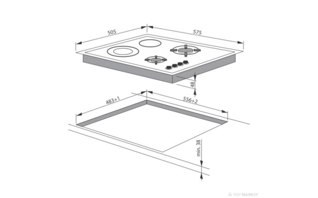 • Размер на отвора за монтаж (ниша): 556 × 483 mm